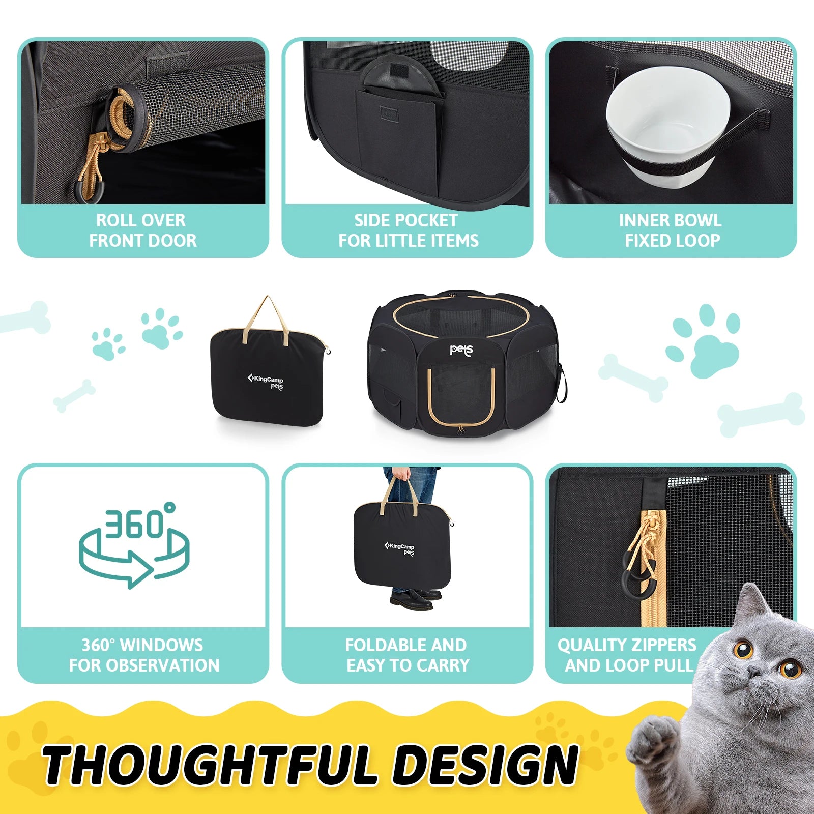 Introducing the KingCamp Dog Tent Playpen for Small Dogs — an indoor, pop-up enclosure built for comfort, safety, and convenience. With quick automatic opening, you can set up a cozy space for your pet in seconds, making playtime cleaner and safer than using a loose blanket or corner of the room.
